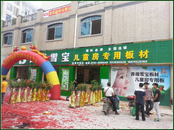 2014年9月25日雪寶板材(湖南宜章店)盛大開業(yè),開業(yè)現(xiàn)場天氣晴好,鞭炮齊鳴,熱鬧非凡。
